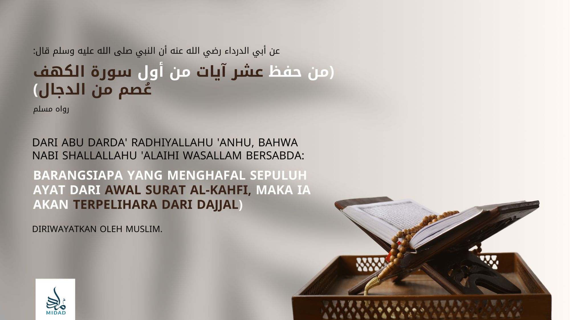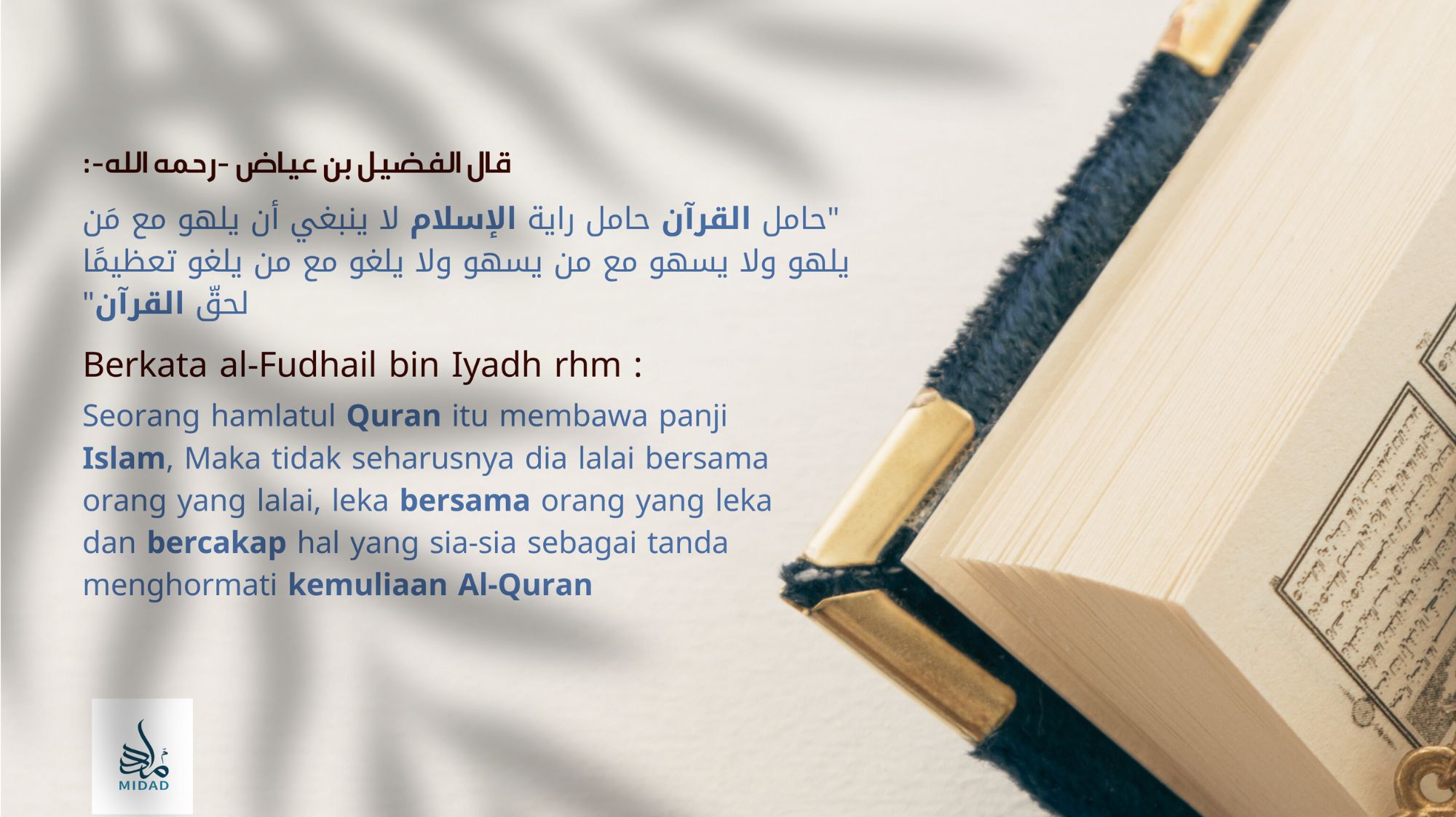 Sorotan program Daurah Ramadhan MIDAD 1444H / 2023M anjuran MIDAD. Daurah Kitab At-Tibyan ini dikupas oleh Al-Fadhil Asy-Syeikh Dr. Ahmad Isa Al-Ma'sarawi, Ulama' Al-Quran yang terkenal. Pengajian Kitab ini berlangsung selama 5 hari.